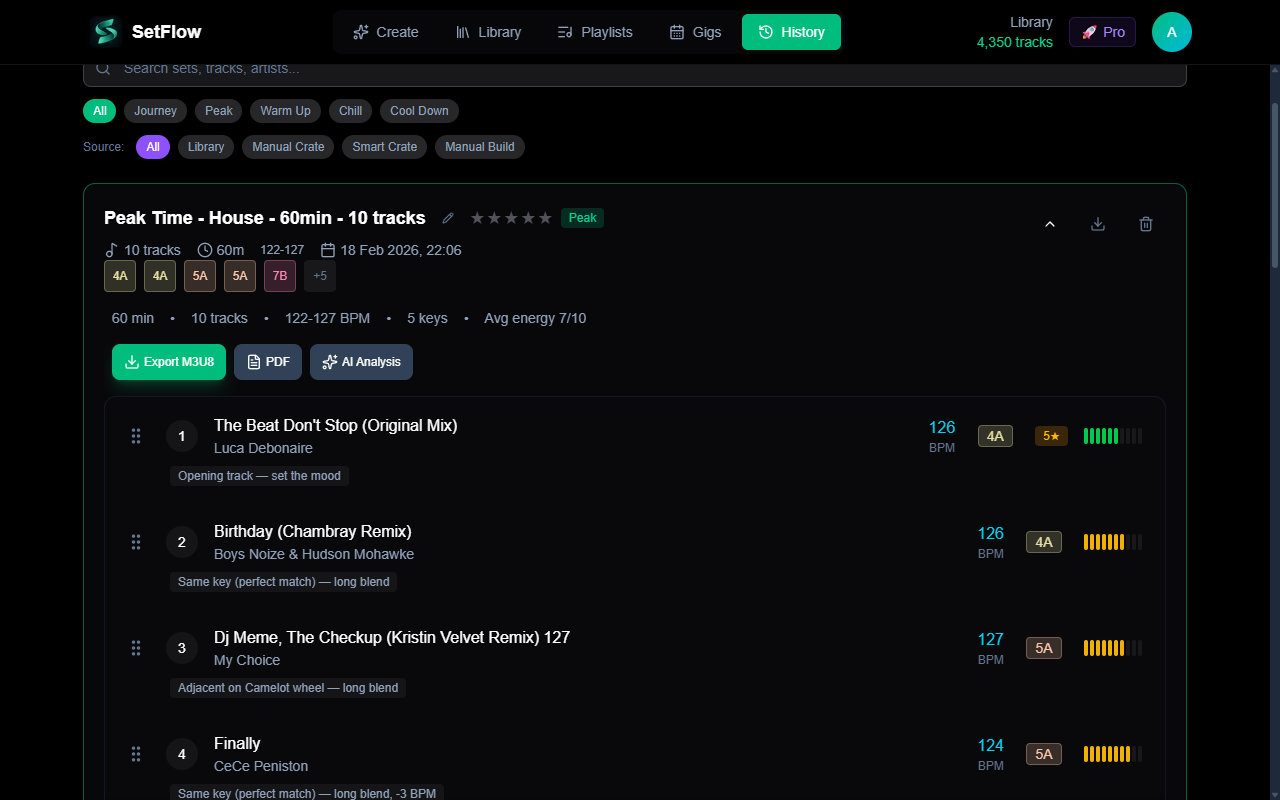Whichever method you use, make sure key data is present in your Rekordbox library tags before importing into SetFlow. Key analysis feeds the harmonic compatibility score, which carries the highest weight (35%) in transition scoring.
